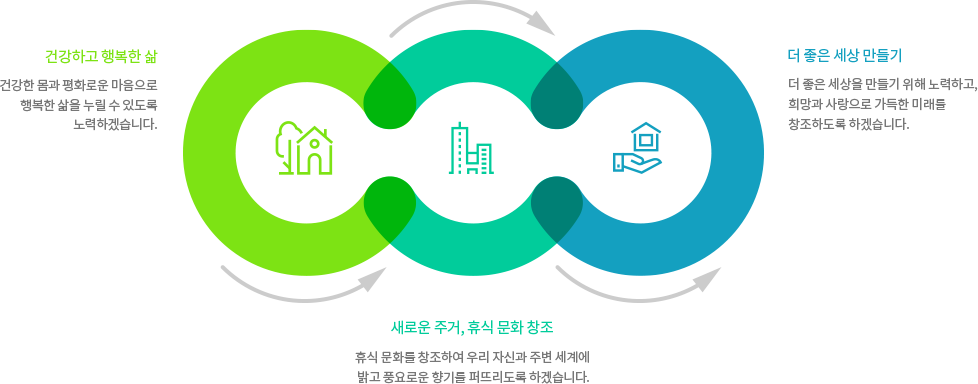 더 좋은 부동산을 개발하여 새로운 주거, 휴식 문화를 창조하고 건강하고 행복한 삶을 누릴 수 있는 더 좋은 세상을 만들고자 합니다.